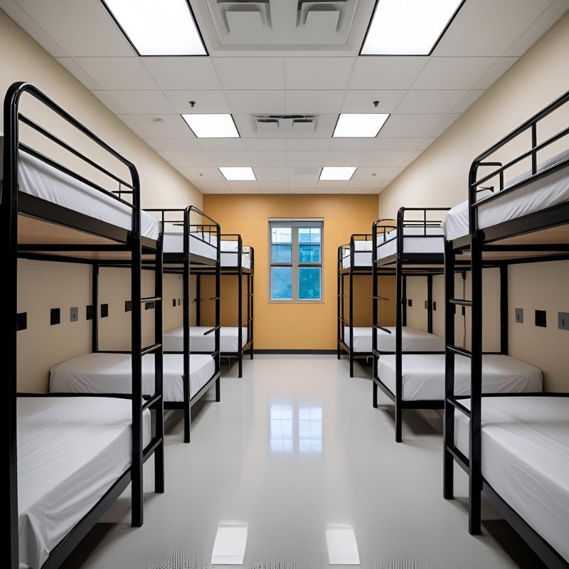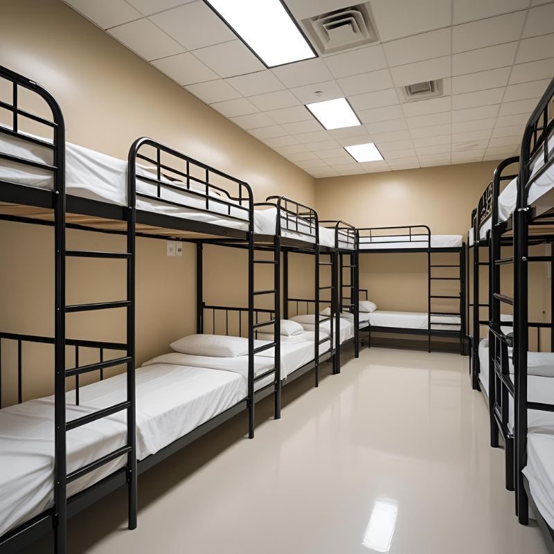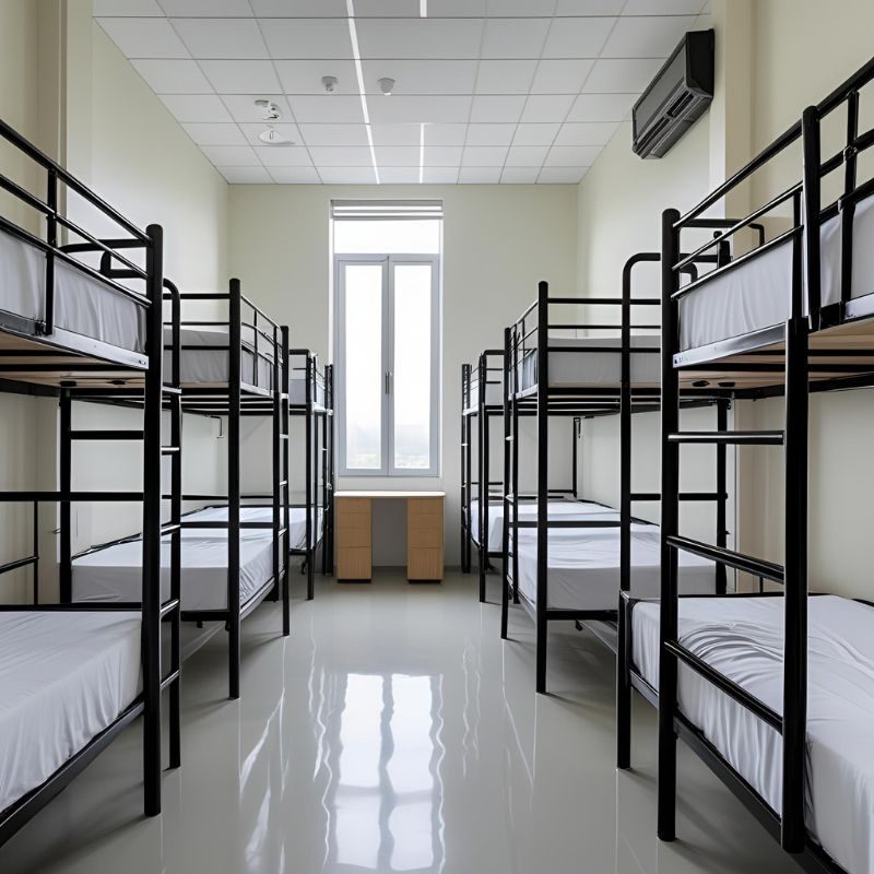 Menggunakan material logam terbaik, termasuk baja yang telah melalui proses anti karat dengan finishing cat powder coating atau pelapisan khusus, sehingga tahan korosi dan mudah dirawat. Material unggul ini memastikan ranjang tetap awet dan memiliki usia pakai panjang, meskipun digunakan banyak orang secara rutin.